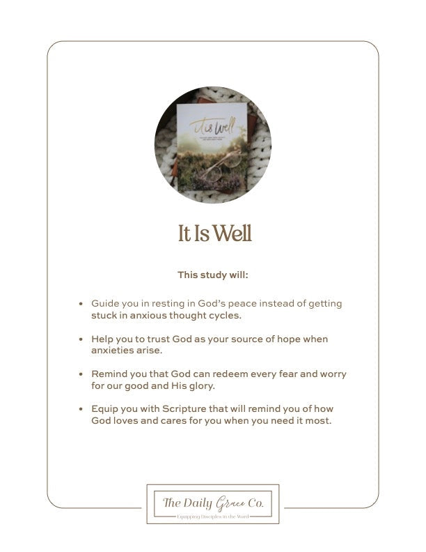It Is Well | 3 Week Study | Walking Away From Anxiety and Into God’s Word "Come to me, all of you who are weary and burdened, and I will give you rest." Matthew 11:28