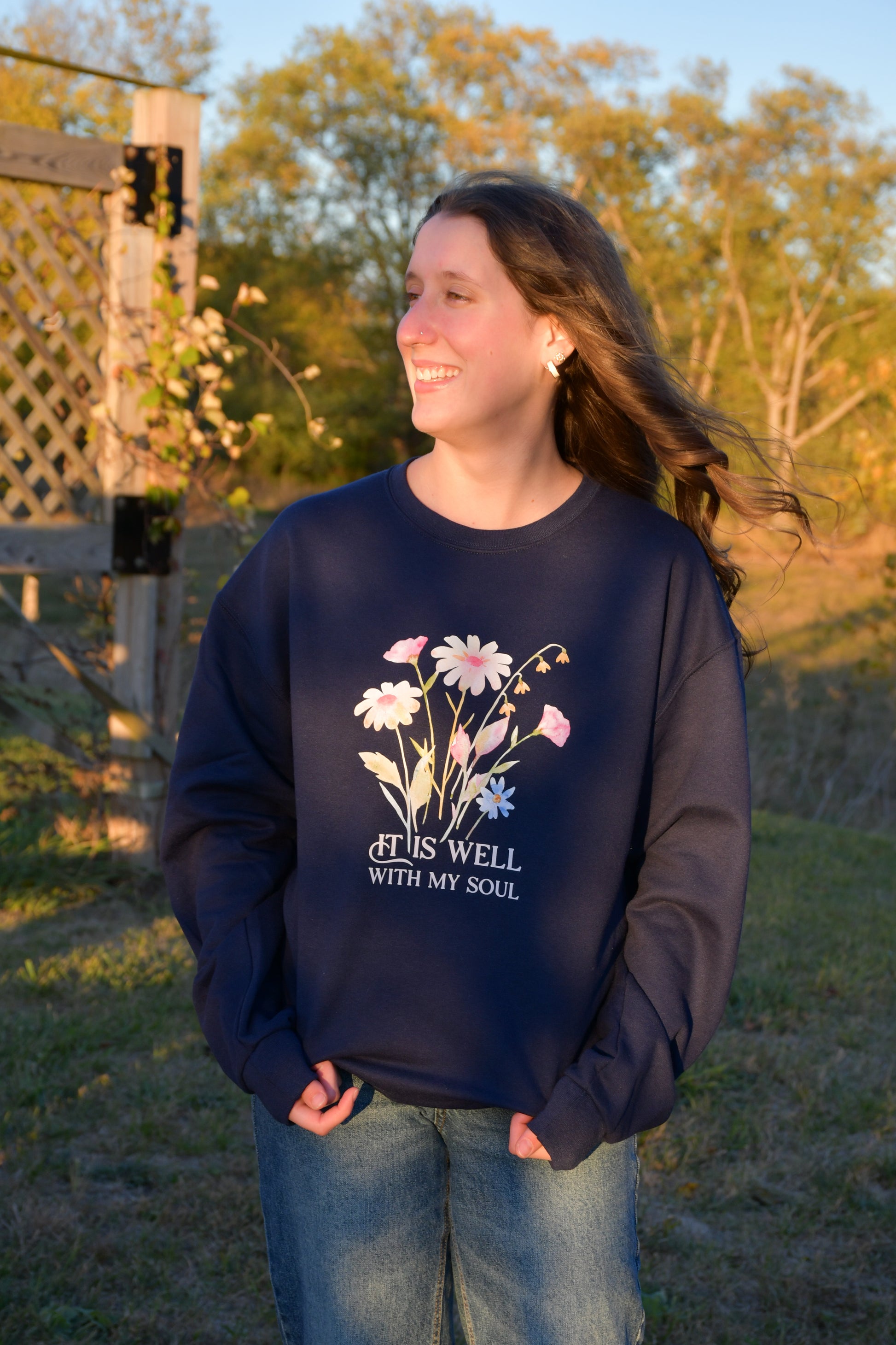 A quick reminder to let go with worry and embrace peace. Feel at ease with this crewneck made from 50% Cotton and 50% Polyester.
