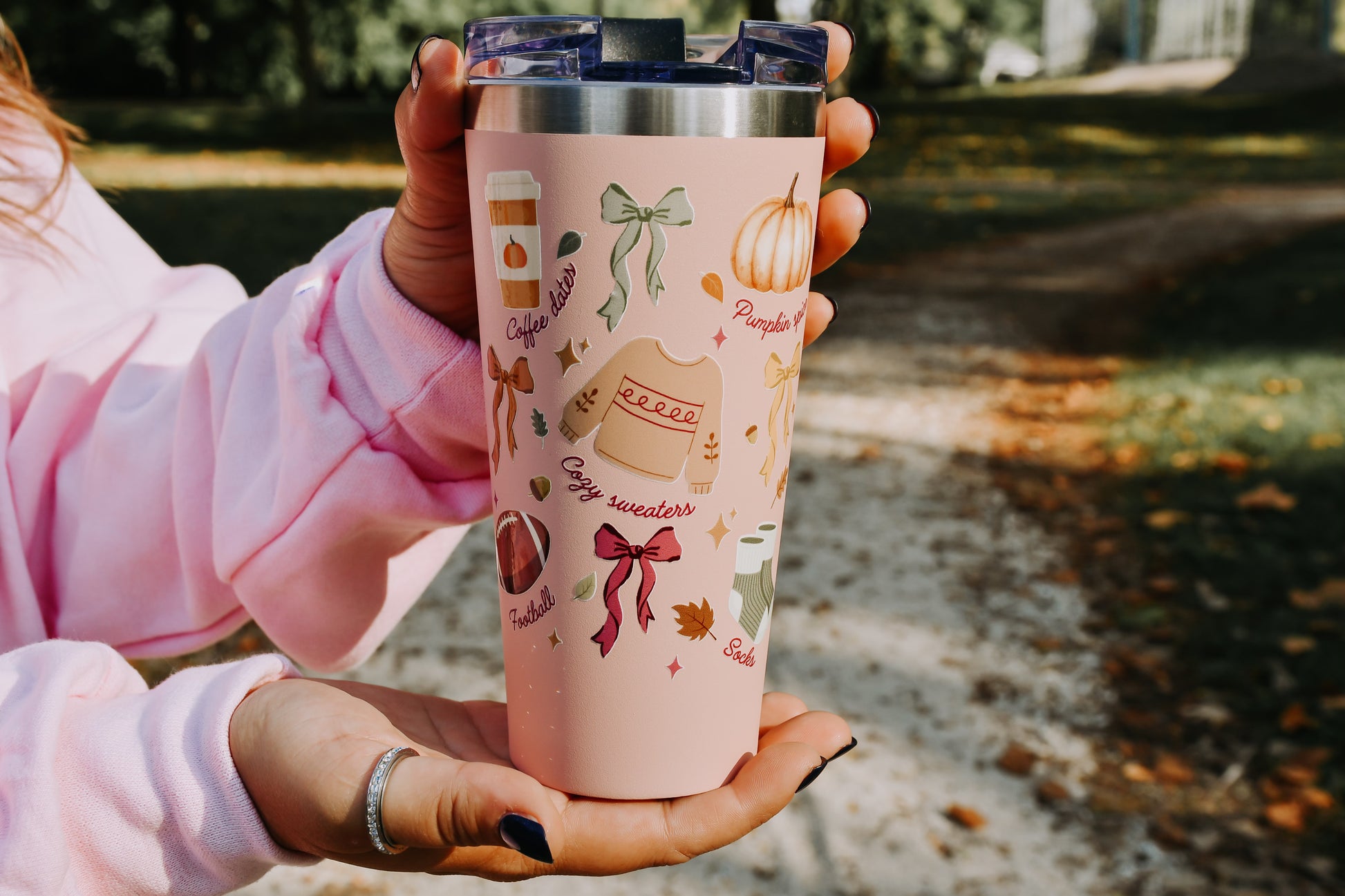 Turn heads as you walk by with your coffee in your new favorite cup with this eye catching tumbler 🍂