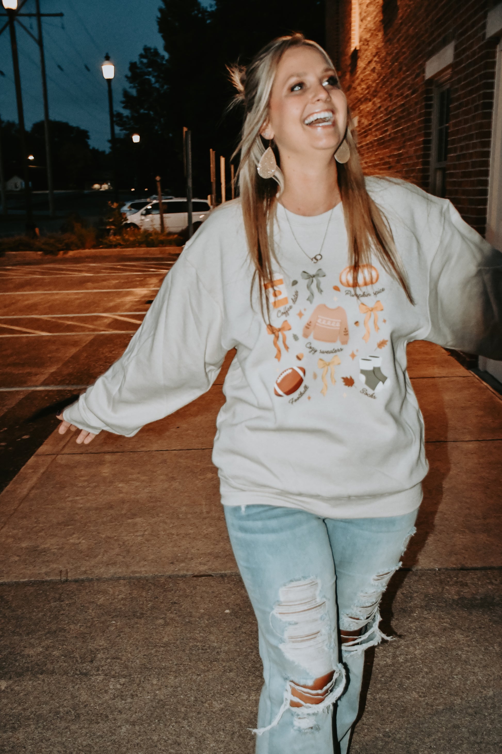 A fan of the glorious fall season? This comfy crewneck is for you! Featuring the favorites of falls all in one place. Feel at ease with this crewneck made from 50% Cotton and 50% Polyester.